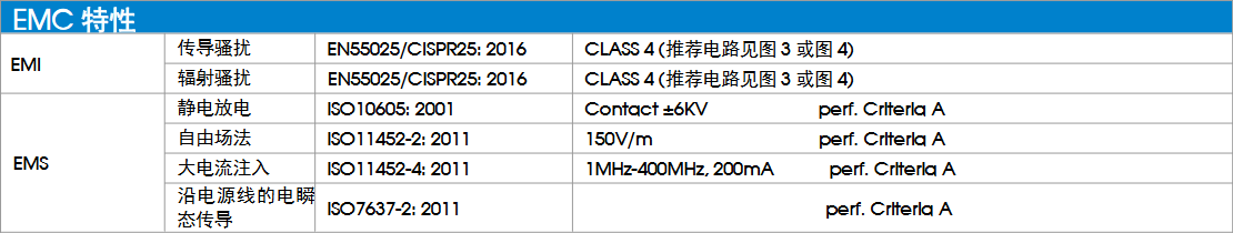 需要符合汽车级电磁兼容标准:ISO11452/CISPR 25/ISO 7637/ISO 10605。