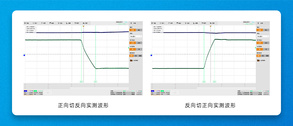 • 支持双向无缝切换,电压波动小,正反向切换时间≤3ms,电压过冲<2%