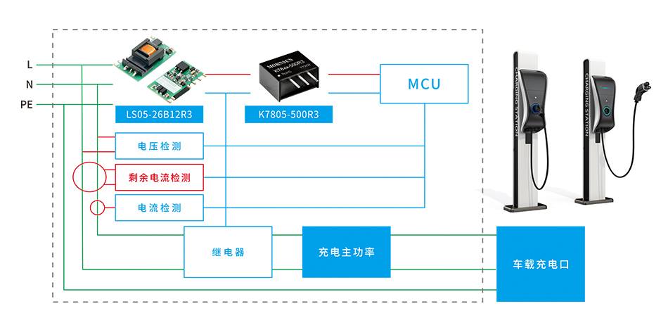 在充电桩将电流进行转换并输送到汽车电池的过程中,各级转换系统中电流的正常是保证充电过程安全顺利进行的必要条件。关键环节上的电流进行准确测量,能及时检测并反馈漏电等异常情况,从而避免安全事故的发生。