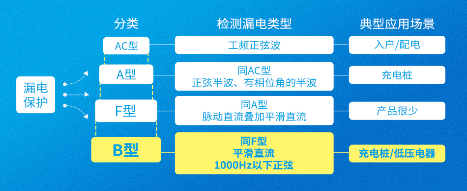 B型剩余电流检测作为功能最齐全的剩余电流检测方式,已在汽车电子、充电桩等行业指定相应的应用要求。在电动汽车充电系统中,整流、PFC等电路往往存在高频正弦交流剩余电流,脉动直流剩余电流、平滑直流剩余电流,常规A型检测不到,且在直流剩余电流叠加的情况下可能会导致A型剩余电流检测失效,故需要B型剩余电流检测。