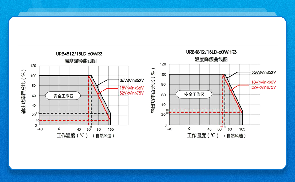 以URB48_LD-60WR3为例,该系列产品效率高达93.8%,空载功耗低至0.24W,有效提高客户系统运行效率,助力节能减排,打造绿色、高效的应用系统。