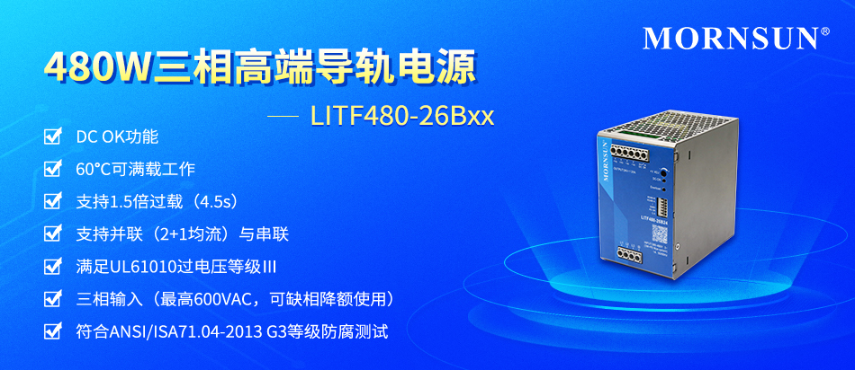 随着市场对高性能、高可靠、智能化三相导轨需求的日益增加,金升阳高端导轨电源产品线增加 T系列三相导轨——LITF480-26B24/36/48系列,该系列具有高性价比、低功耗、高效率、高可靠性、安全隔离等优点,广泛适用于军工、航天、核电、风电、石油化工、冶金、高端制造、精密制造等行业的控制系统和驱动系统。