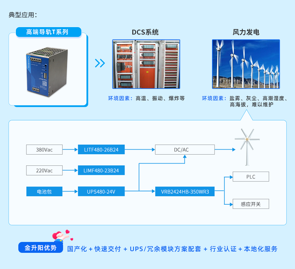 广泛适用于对可靠性要求严苛的应用场景,如军工、航天、核电、风电、轨交、石油化工、冶金、高端制造、精密制造、新能源等,为其提供高稳定度、高抗干扰、高电气性能的电源。本产品适合在自然空冷却环境中使用,如在密闭环境中使用请咨询金升阳FAE。
