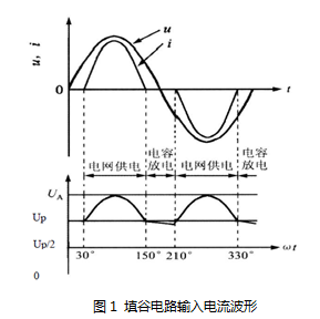 LN系列采用填谷电路进行设计,利用高压陶瓷电容完美替代铝电解电容,增加了整流管的导通角,使输入电流波形从尖峰脉冲变得更接近正弦波,从而大幅度提高电源的功率因素(如表1所示),提高电源的转换效率,更加利于环保节能,显著降低总谐波失真。如图1所示: