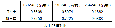 以下所有表中旧方案为采用电解电容的产品,新方案为采用填谷电路无电解电容的新产品.