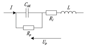 根据铝电解电容的物理结构,可以用图 1中所示的电路等效,其中CAK代表两电极间的理想电容量;Rp 是并联电阻,代表了电容的漏电流成分;Rl 代表了电容引出端及电极部分的串联电阻成分;L 代表了引出线和连接处的等效串联电感成分。