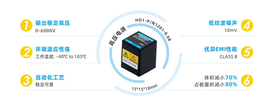 市场上采用超声波技术进行工程检测的便携设备日益增多,如超声波探伤仪、x光机、光谱分析仪、无损探伤领域等。为满足该部分客户以及静电印刷、高电压偏置、工控、医疗化工、科学实验等领域对DC/DC高压电源的需求,金升阳针对性推出HO系列高压电源。HO系列最高输出电压可以做到6000V,且有正负电压输出可选。该系列是金升阳为了满足电源系统中需要产生高电压、并且对输出电压稳定性要求高的应用场合而设计开发的产品。同时,金升阳可针对特殊需求提供产品定制。