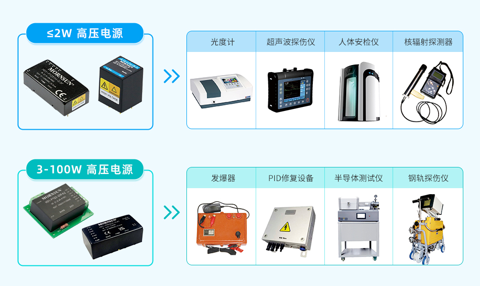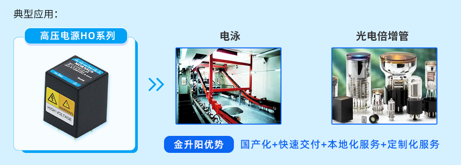 金升阳HO1系列高压电源已在市场上得到成熟运用,具体应用参考包括光电倍增管、雪崩二极管、高压电容充电、高压电场、高压脉冲等多种应用场合,产品可大致分为≤2W和3-100W两类。