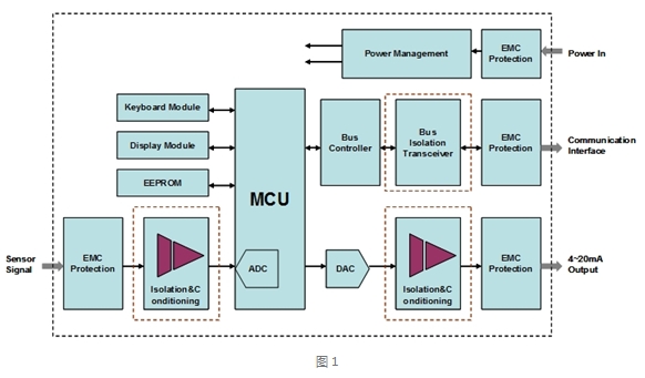 工业现场仪表在工业生产过程控制系统中,既需要监视前端传感器传递的电信号,同时也需要将处理后的信号传递给控制中心主机,为了信号传输的可靠与稳定,必须要考虑各信号端口的隔离处理,以消除仪表接入系统后的地电位差问题。