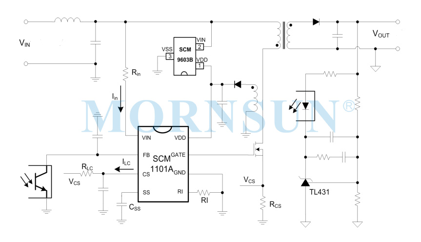 CTTURA/B-6/10T系列、CTTURB-20T系列可与MORNSUN SCM1101A副边反馈控制IC配套使用,该组合便于实现 4:1 宽压输入、6-20W反激式电源设计,其具有多种保护功能及优越的 EMI 性能。