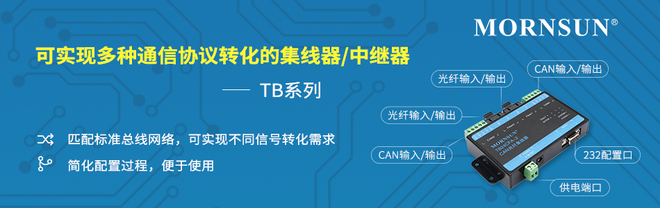 一、产品介绍随着工业现代化建设的迅猛发展,工业物联网成为众多企业进行工业升级的重要趋势,市场上对于复杂环境下的无人化系统管理的需求愈发增大,金升阳针对客户在复杂组网系统设计过程中通信节点不足、不同信号类型转化困难的问题,重磅推出可适用于多种通信协议间通信的TB系列232/485/CAN/光纤集线器/中继器产品。二、产品优势①匹配标准总线网络,实现不同信号转化需求TB...
