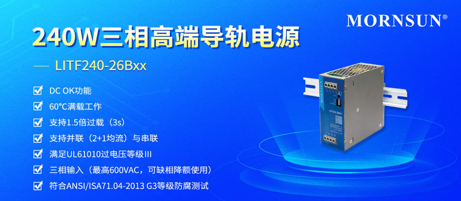 随着市场对高性能、高可靠三相导轨需求的日益增加,金升阳推出240W三相高端导轨LITF240-26B24/48系列,补全LITF系列低功率段产品布局,LITF240-26B系列具有高性能、低功耗、高效率、高可靠性、安全隔离等优点,广泛适用于充电桩、核电、风电、石油化工、冶金、高端制造、精密制造等行业的控制系统和驱动系统。
