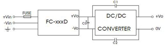 由图3 可看出,在轨道电路读取器系统中,主电源可采用金升阳的URF1D24QB-100W 单路(24V/4.2A)输出电源,24V 转5V 的模块可以采用金升阳的VRB2405LD-50W单路(5V/10A)输出电源,而5V可直接供给后级板卡供电,板卡内部包含MCU、485、CAN 以及显示等部分。远程DTU 供电电源可以采用我司URB2412YMD-20W的模块。但由于轨道电压不稳定,EMC防护非常重要,所以对于DC-DC 的前级电源进行EMC防护是必须的,可参考电源厂商的推荐电路或者配套使用EMC防护模块(金升阳FC-CX3D),如下图所示: