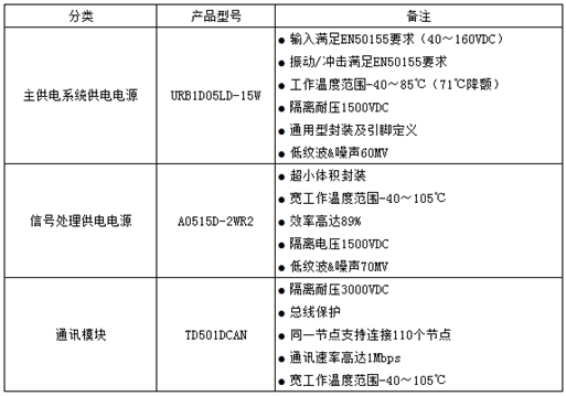 针对不同的供电情况,电源模块的选型要求如下: