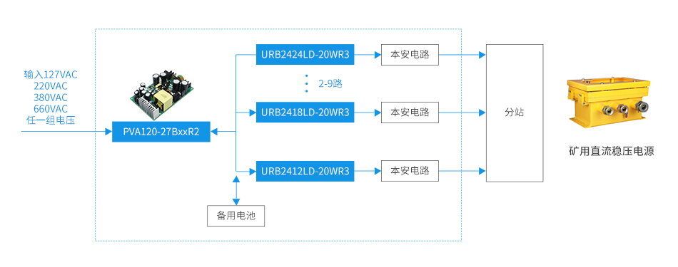 PVA120-27BxxR2系列,面向煤矿类/安防类电气客户,可满足该行业127/220/380/660VAC等电压需求,隔离耐压高、EMS性能好、保护功能全,广泛适用于煤矿监控、安防检测、本安设备等领域,为客户提供供电安全、安装便捷、应用可靠的支持。若需求应用于电磁兼容恶劣环境,请参考推荐电路。