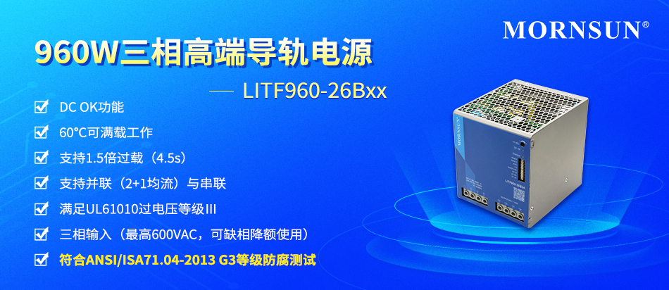 随着市场对高性能、高可靠、智能化、大功率三相导轨需求的日益增加,金升阳重磅推出高端型960W三相导轨LITF960-26B24/36/48系列,该系列具有高性能、低功耗、高效率、高可靠性、安全隔离等优点,广泛适用于充电桩、核电、风电、石油化工、冶金、高端制造、精密制造等行业的控制系统和驱动系统。一、产品优势1)高性能 ...