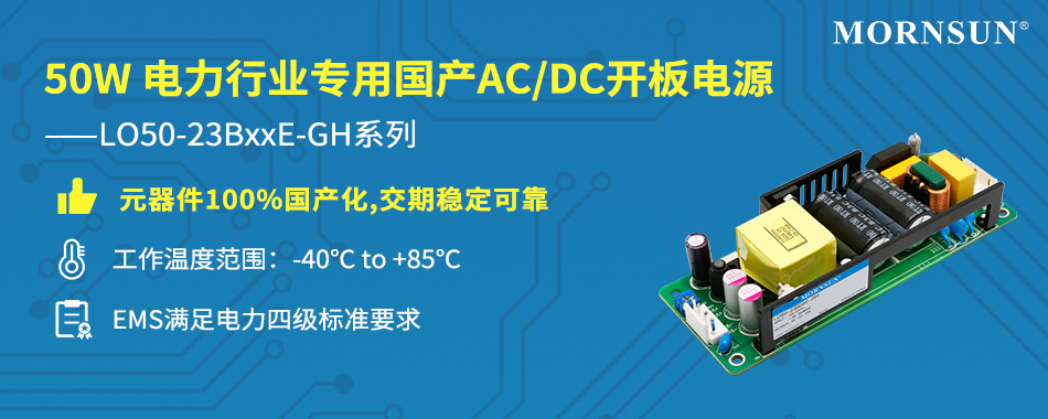元器件100%国产化! 50W电力行业专用AC/DC开板电源 —LO50-23BxxE-GH系列