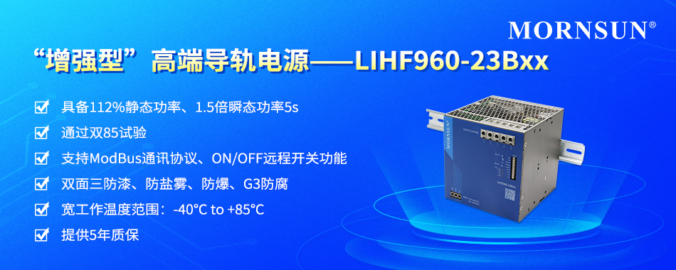 高端导轨电源广泛应用于军工、航天、核电、船舶、冶金、风电、轨交、精密制造等高端工业领域,金升阳在推出LIHF240/480系列基础上,进一步拓展功率,开发出960W LIHF系列高端导轨,满足高端制造不同细分领域对高功率导轨电源的需求,助力高端制造业稳健发展。一、产品优势1)宽输入电压 全球通用输入电压范...