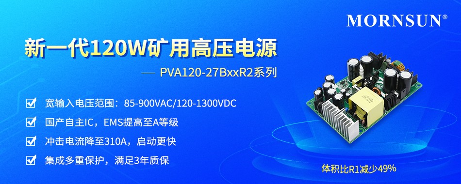 金升阳在煤矿电源领域,已深耕多年,现通过自主技术升级,降体积、降成本、提性能,推出新一代120W煤矿专用高压电源PVA120-27BxxR2系列。该系列输入电压宽(85-900VAC/120-1300VDC),可交流或直流供电,提供3年质保,温度范围宽,使用自主IC,体积比R1减小49%,EMS提高至A等级,冲击电流降至310A,启动更快...