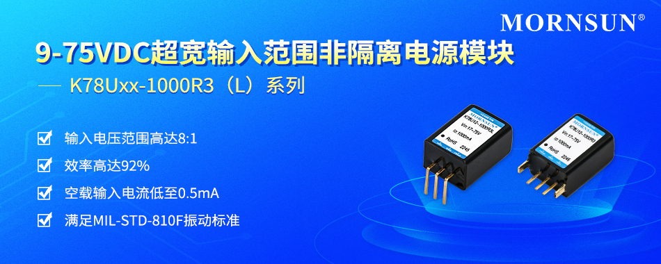为满足客户更多样的设计需求,金升阳推出超宽电压输入、非隔离稳压单路输出电源------K78Uxx-1000R3(L)系列。该系列产品拥有8:1宽输入电压范围(9-75VDC),工作温度范围宽至-40℃到+105℃,空载输入电流低至0.5mA,效率高达92%,具有输出短路保护功能,可满足MIL-STD-810F标准等级振动,性...