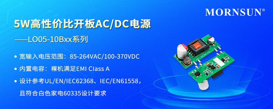LO05-10Bxx系列内置电容,裸机满足EMI,广泛适用于家电、智能家具等民用领域。本产品适合在自然风冷却环境中使用,如在密闭环境中使用