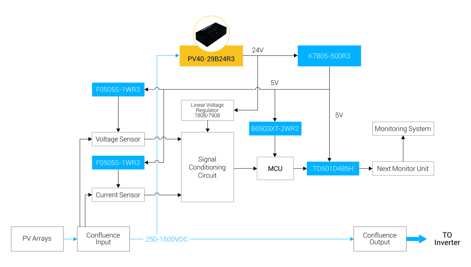 ② 取电方便:可从高压母线取电,无需额外PV光伏板,无需额外供电线路,简化系统设计,增加有效发电空间,减少安装维护成本。