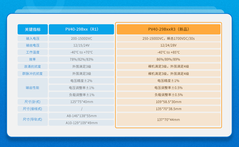 金升阳通过技术革新,升级一代PV40-29Bxx,推出性价比更高的PV40-29BxxR3系列。该系列支持1700VDC瞬态高压,提供3年质保,满足CSA/CE/UL认证要求,温度范围更宽,裸机EMC性能更优,封装形式多样,体积比R1减小49%,为光伏、储能客户提供更优质、更安全、更可靠的解决方案。