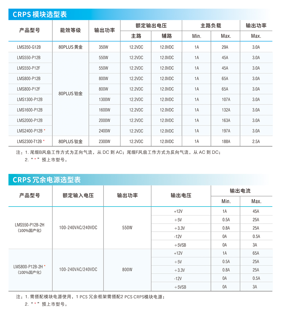 - 350-2400W服务器专用CRPS电源——LMS系列